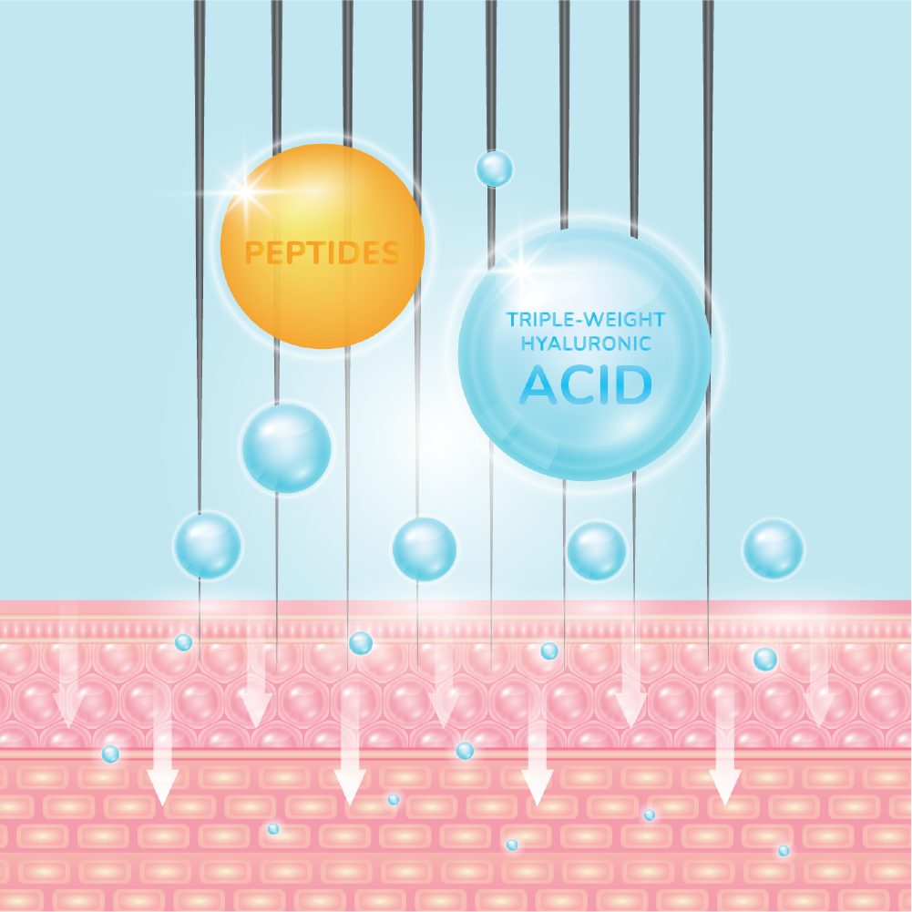 The GLIDE from imedpen® Solutions is a microneedling glide exclusively developed for microneedling. This breakthrough formula features peptides and three Niosome vesicles encapsulating different molecular weights of Hyaluronic Acid for optimal penetration across ALL skin layers. This helps achieve reduced fine lines and wrinkles, whilst delivering youthful hydration, firmness, and elasticity for structured, firm skin.