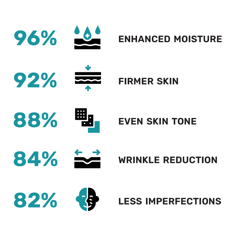 The above statistics are based on a study that was completed on 30 patients aged between 35-55, with a targeted three-session treatment plan over 63 days, conducted on Day 0, Day 21, and Day 42; each session was strategically spaced to maximise skin renewal and collagen boost.