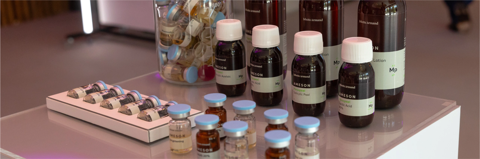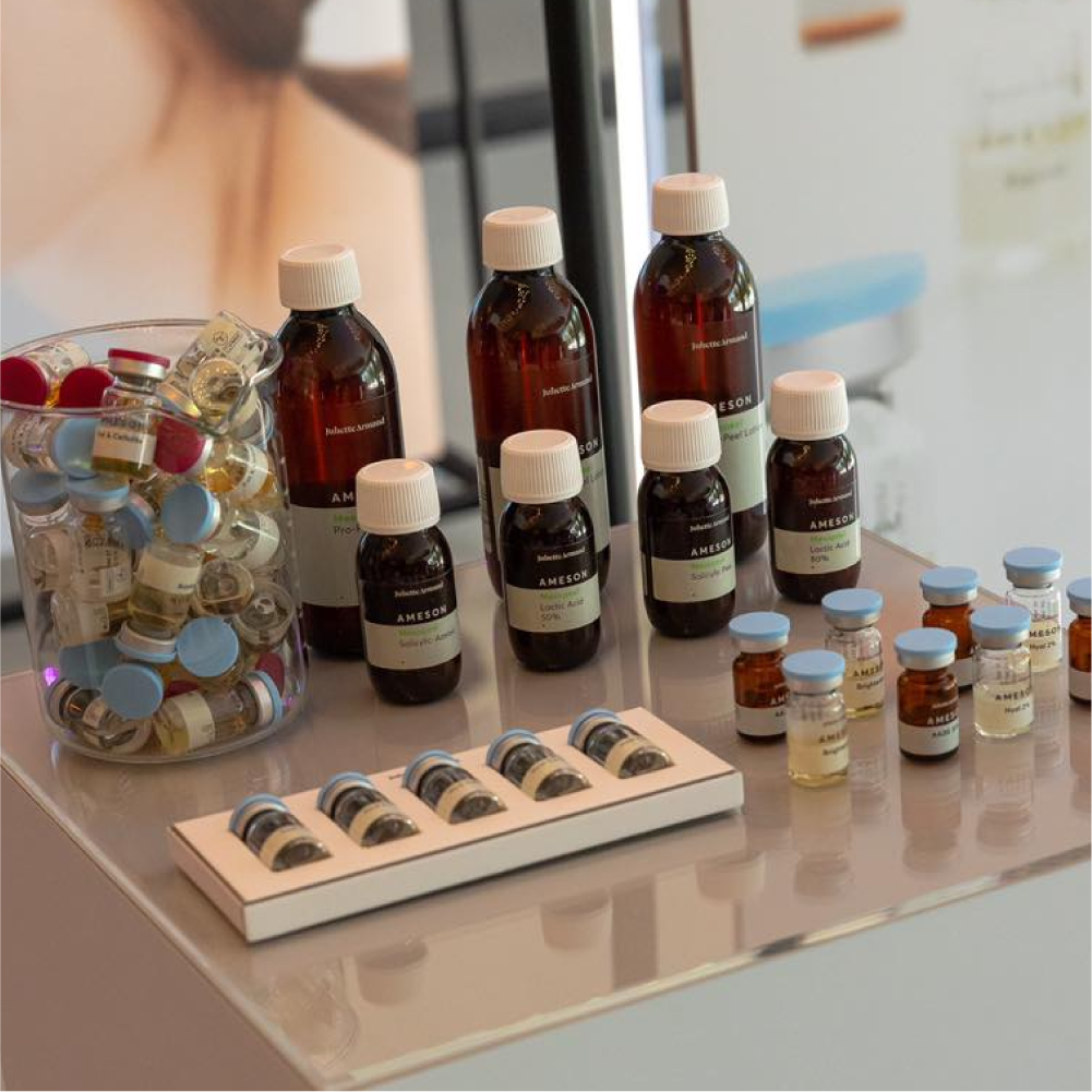 Ameson Mesopeel is a professional chemical peeling system based on organic acids, aimed at rejuvenating the skin and making it glowing, bright and soft.