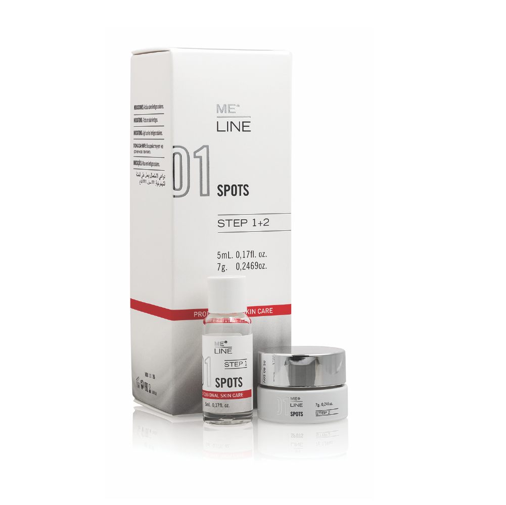 Two-step depigmenting kit for solar lentigines and hyperkeratosis. The synergic actions of its active ingredients gently penetrate the skin in order to eliminate specific skin lesions.