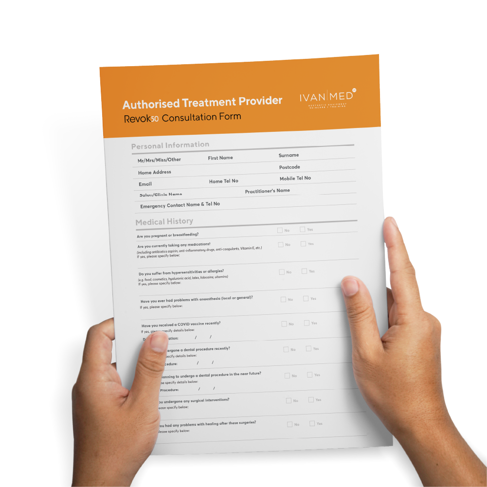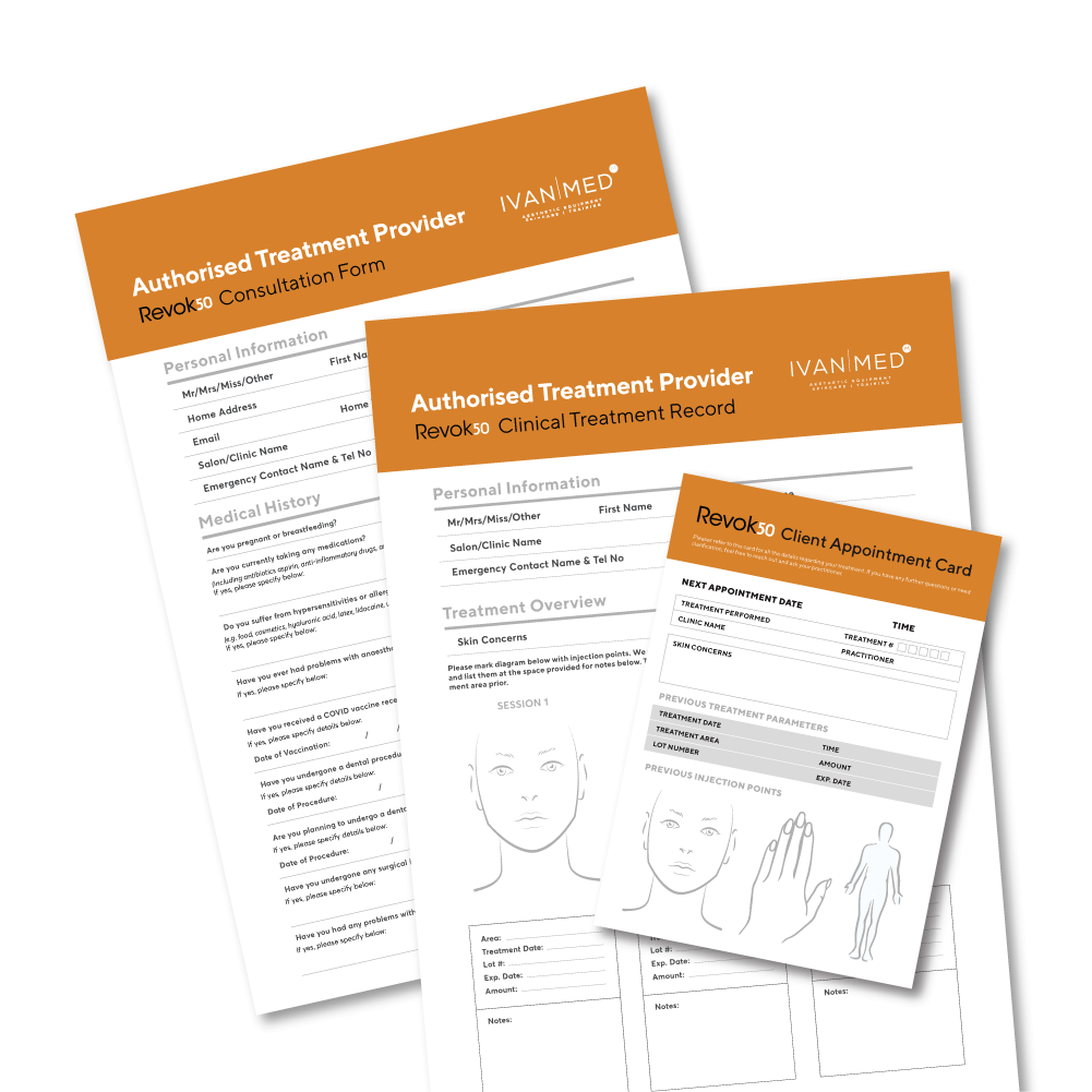 Designed to streamline client assessments and ensure safe, and effective treatments, these consultation forms help you gather essential information and document client concerns before performing a Revok50 treatment.